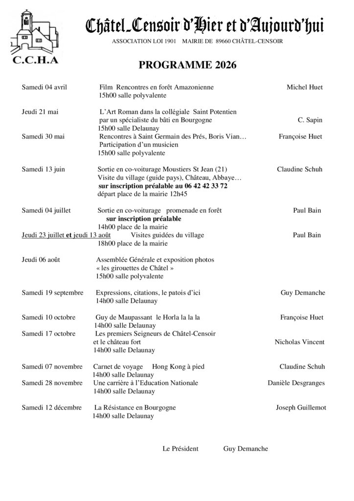 Président : Guy Demanche. 19 rue Vaulabelle à Châtel-Censoir