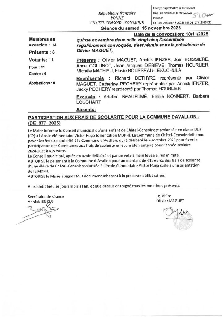 Participation aux frais de scolarité par la commune d’Avallon