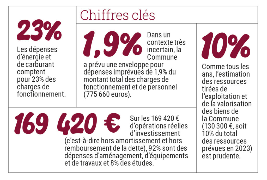 Moment essentiel de l’action municipale, le Conseil municipal du 14 avril 2023 était consacré aux comptes de l’année 2022 et au budget de l’année 2023. Tous ont été adoptés à l’unanimité. La cuvée 2023 est particulièrement rassurante pour la bonne santé budgétaire et financière de la Commune, puisque l’année commence avec un résultat excédentaire conséquent de plus de 230 000 euros sur l’exercice 2022 et propose un budget en suréquilibre de 236 500 euros en recettes sans augmentation de la fiscalité.
