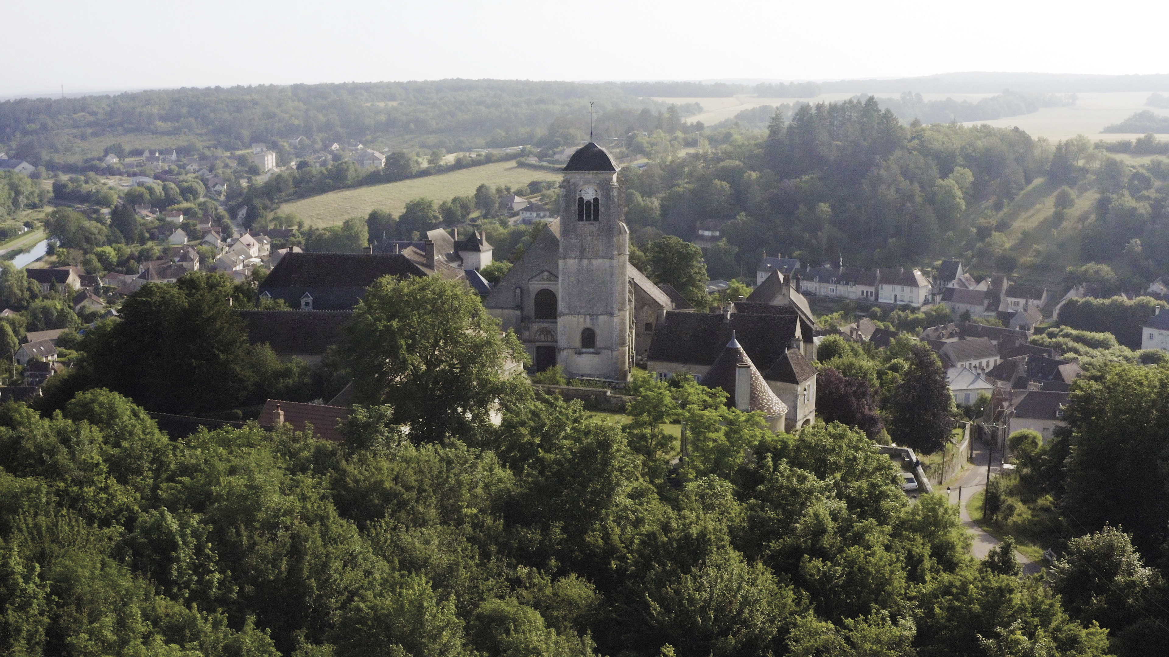 Un chapitre de chanoines réguliers sous l’autorité de l’évêque d’Auxerre est installé par les seigneurs de Vergy au XIe siècle et subsistera jusqu’à la Révolution. C’est au IXe siècle que l’église devient collégiale et qu’elle est dédiée à Saint-Potentien. C’est probablement pendant la deuxième moitié du XIe siècle que l’église romane est construite, dont il reste le chœur et la crypte. La crypte conservait les reliques de Saint-Potentien, arrivées définitivement en 1168 depuis Lucy-sur-Yonne : elles ont fait l’objet d’importants pèlerinages jusqu’à la Révolution.