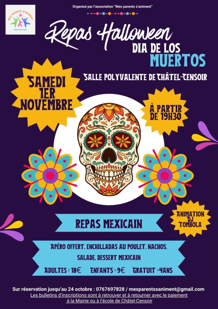 Repas d’Halloween le samedi 1er novembre 2025 à partir de 19 h 30 à la salle polyvalente de Châtel-Censoir